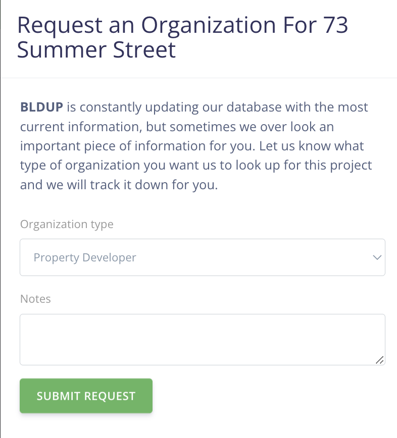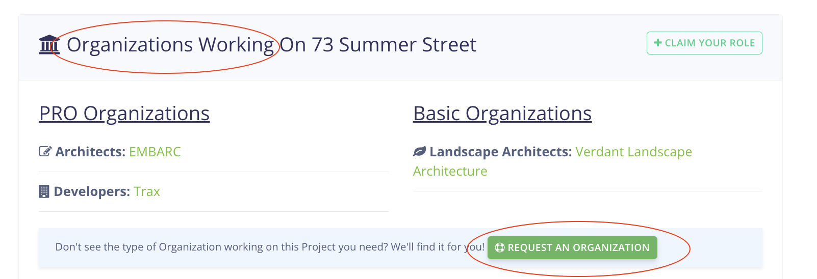 When you come across a project page that does not have an organization you are looking for you can request it. Start on a project page and scroll to the organization working on the project.